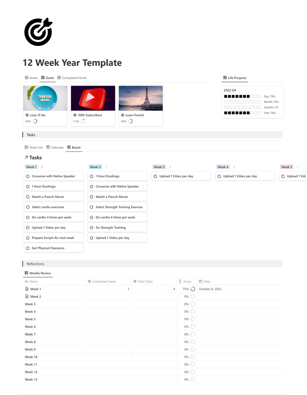 12 Week Year Planner Notion Template