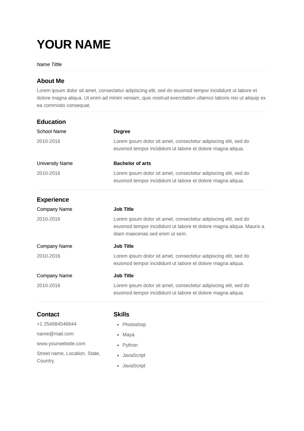 Easy to use printable Resume templates