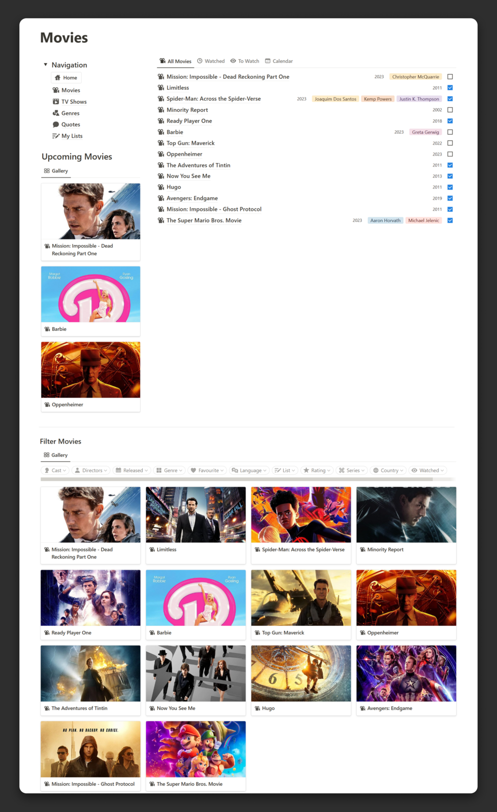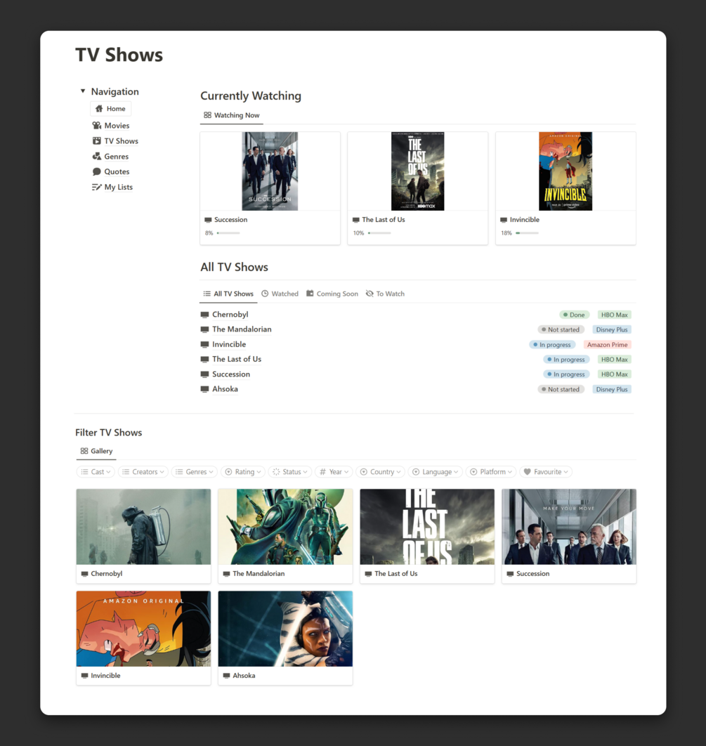 Organize and track your favorite movies and TV series with ease using this comprehensive Notion template!