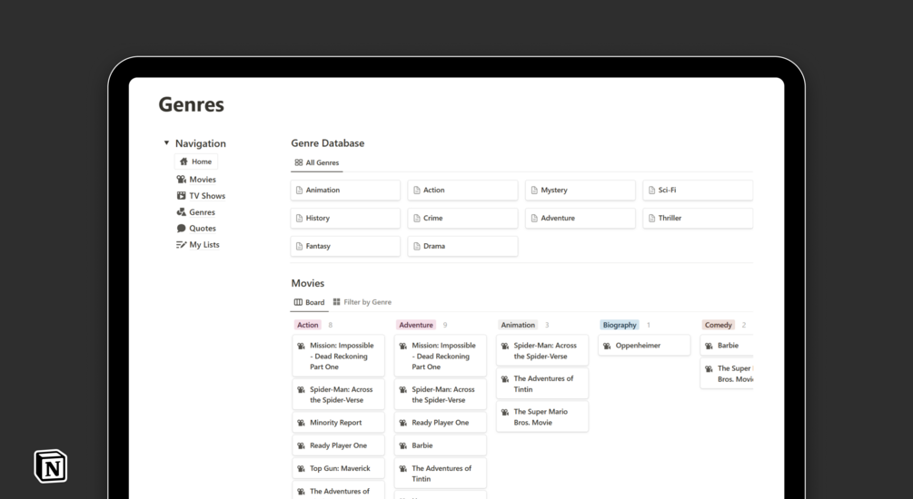 Organize and track your favorite movies and TV series with ease using this comprehensive Notion template!